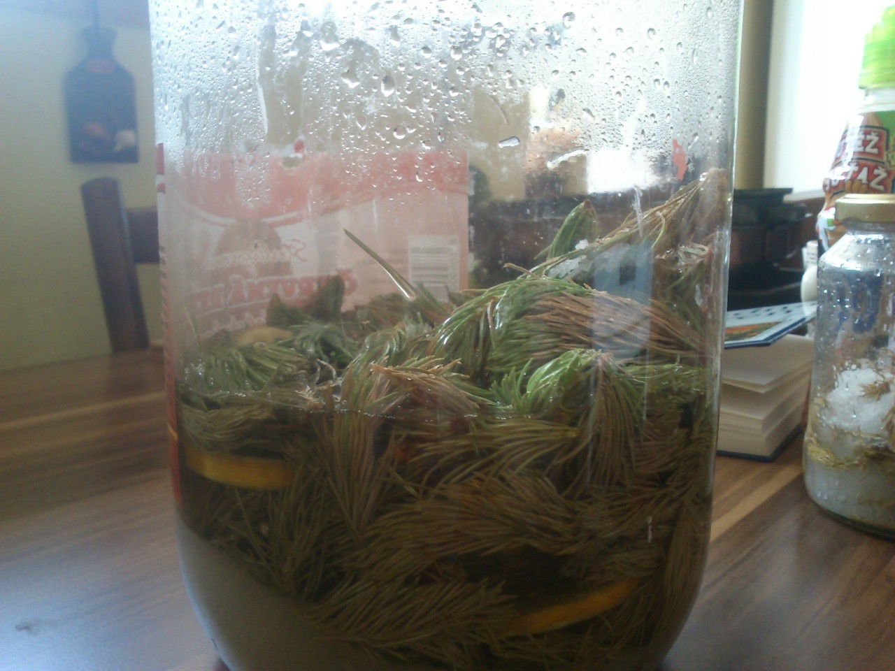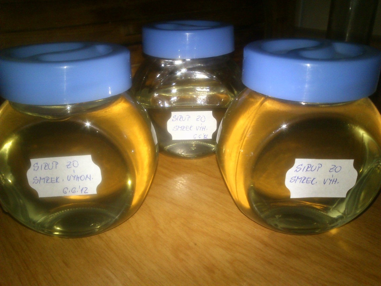 Na jar ( koniec marca – začiatok apríla, až do polovice mája ) si natrháme mladé výhonky zo smreka a začneme vrstviť do 4 - 5litrovej fľaše. Dáme vrstvu výhonkov ( môžeme ho pomiešať s listami skorocelu ) a na to vrstvu kryštálového cukru. Medzi môžeme dať aj plátky citrónu. Toto opakujeme niekoľkokrát a poslednú vrstvu dáme cukor. Potom fľašu dobre uzavrieme a dáme na parapet, na slnečné miesto ( tí, čo majú záhradku, to môžu zakopať na 3 mesiace do zeme ), môžeme každý deň pretrepať. Cca po 2 týždňoch by mal byť sirup hotový ( cukor sa rozpustí a výhonky pustia šťavu ). Potom sirup scedíme ( najlepšie cez plátno, plienku...) a nalejeme do menších fľaštičiek a uzavrieme. Nevarime. Skladujeme na tmavom mieste v chlade.Na jar ( koniec marca – začiatok apríla, až do polovice mája ) si natrháme mladé výhonky zo smreka a začneme vrstviť do 4 - 5litrovej fľaše. Dáme vrstvu výhonkov ( môžeme ho pomiešať s listami skorocelu ) a na to vrstvu kryštálového cukru. Medzi môžeme dať aj plátky citrónu. Toto opakujeme niekoľkokrát a poslednú vrstvu dáme cukor. Potom fľašu dobre uzavrieme a dáme na parapet, na slnečné miesto ( tí, čo majú záhradku, to môžu zakopať na 3 mesiace do zeme ), môžeme každý deň pretrepať. Cca po 2 týždňoch by mal byť sirup hotový ( cukor sa rozpustí a výhonky pustia šťavu ). Potom sirup scedíme ( najlepšie cez plátno, plienku...) a nalejeme do menších fľaštičiek a uzavrieme. Nevarime. Skladujeme na tmavom mieste v chlade.Na jar ( koniec marca – začiatok apríla, až do polovice mája ) si natrháme mladé výhonky zo smreka a začneme vrstviť do 4 - 5litrovej fľaše. Dáme vrstvu výhonkov ( môžeme ho pomiešať s listami skorocelu ) a na to vrstvu kryštálového cukru. Medzi môžeme dať aj plátky citrónu. Toto opakujeme niekoľkokrát a poslednú vrstvu dáme cukor. Potom fľašu dobre uzavrieme a dáme na parapet, na slnečné miesto ( tí, čo majú záhradku, to môžu zakopať na 3 mesiace do zeme ), môžeme každý deň pretrepať. Cca po 2 týždňoch by mal byť sirup hotový ( cukor sa rozpustí a výhonky pustia šťavu ). Potom sirup scedíme ( najlepšie cez plátno, plienku...) a nalejeme do menších fľaštičiek a uzavrieme. Nevarime. Skladujeme na tmavom mieste v chlade.